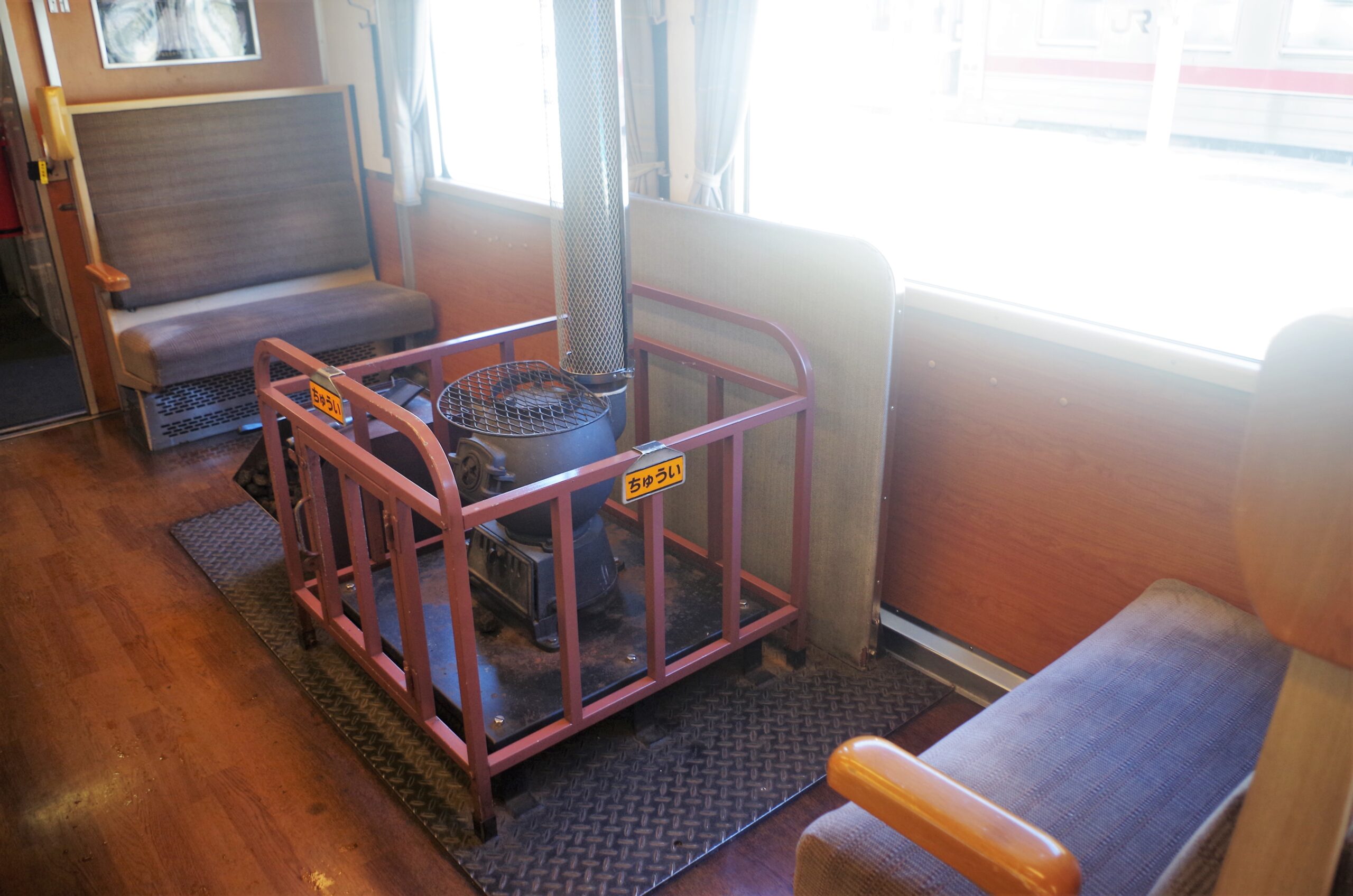 列車内のダルマストーブでスルメイカを焼いて食べる人も